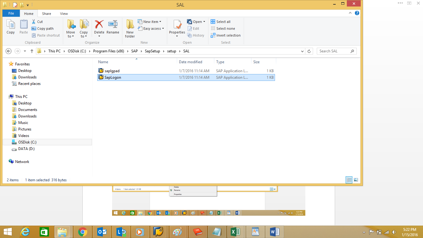 Masuk ke apps, lalu clik kanan, contoh dibawah misal SAP logon, click kanan, pilih open file location,