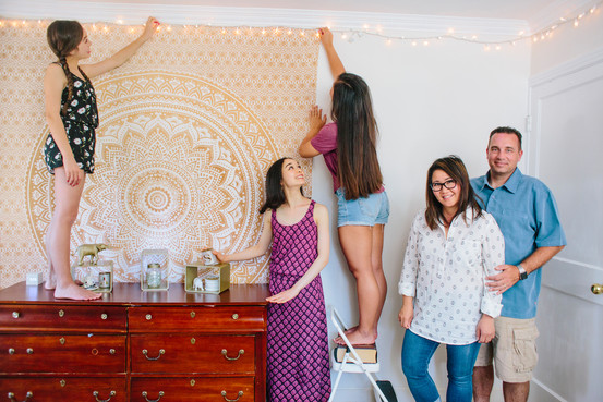 When Alexandra and Sally recently redecorated the bedroom they share, a wall collage of photos they created made the room seem cluttered to Alexandra. The sisters disagreed, then came up with a compromise—hanging Polaroids on a string from the ceiling instead, Alexandra says.