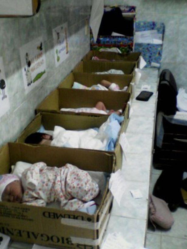 Dlm gambar dibawah , para bayi yg terlahir hy mampu ditaruh dlm box box kardus…