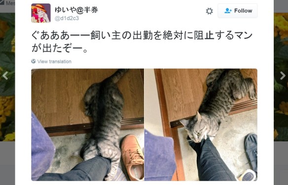 kucing ini gak mau ditinggal pergi kerja Posted on 2016 by bonny Tryata byk juga yg mengalami, ketika akan ditinggal kerja, segala cara dikerahkan utk membuat ownerny tetap dirumah.. wahh Share this: Click to share on X (Opens in new window) X Click to share on Facebook (Opens in new window) Facebook Like Loading... Related