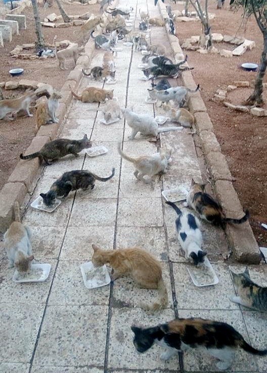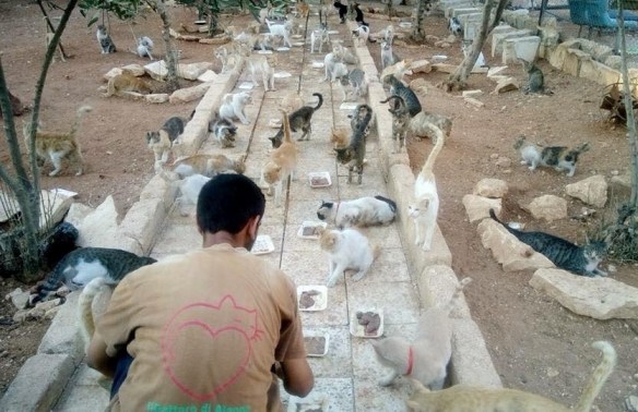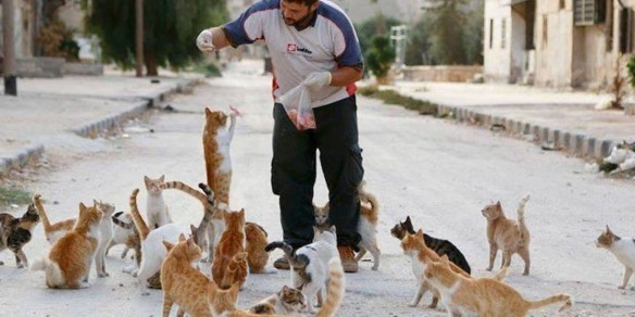 Seorang pria Mohammad Alaa Aljaleel, juga dikenal “The Cat Man of Aleppo” rela memberi makan kucing kucing yg ditinggalkan pemiliknya,