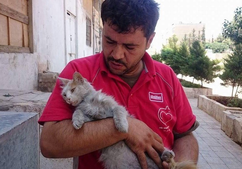 Seorang pria Mohammad Alaa Aljaleel, juga dikenal “The Cat Man of Aleppo” rela memberi makan kucing kucing yg ditinggalkan pemiliknya,