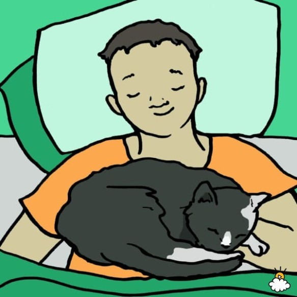 Hal ini karena kucing ‘bernapas dalam dan luar, memberikan Anda contoh verbal bagaimana napas dan tetap tenang.