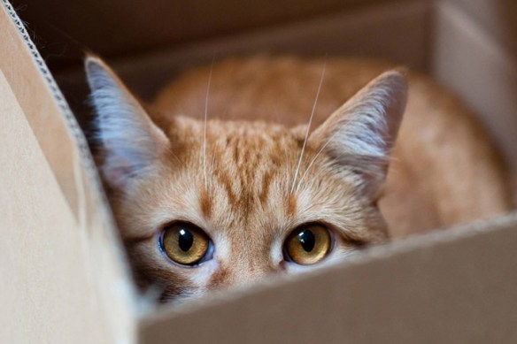 kucing domestik lebih memilih kotak. Mencari tempat yang aman untuk menyembunyikan adalah strategi yang membantu kucing untuk membiasakan diri lingkungan yang asing dan tekanan stres kekhawatiran – kecemasan.