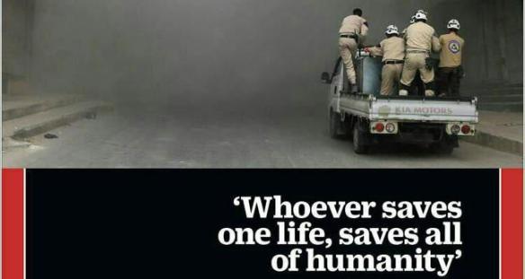 Majalah Time mengutip ayat Quran di sampul terbaru tentang Suriah , dgn relawan Helm putih / white helm nya