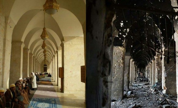Masjid bersejarah umayyad dibangun antara abad 8 – 13 , hancur dlm gbr dibawah.