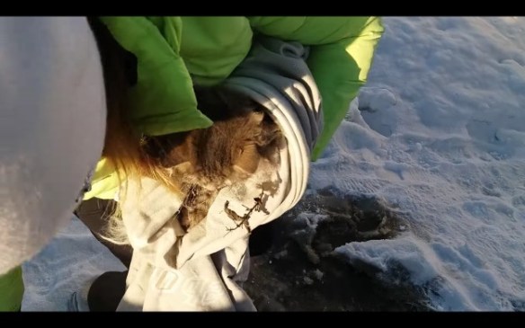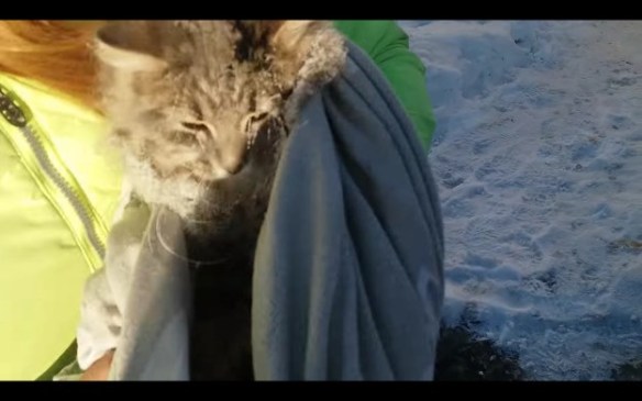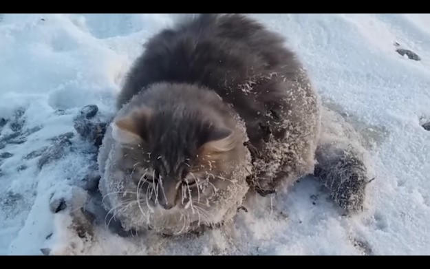 Ini tentang aksi kemanusiaan , seekor kucing terdiam tak bisa bergerak, dan ternyata perlahan membeku dlm suhu udara dibawah nol derajat.
