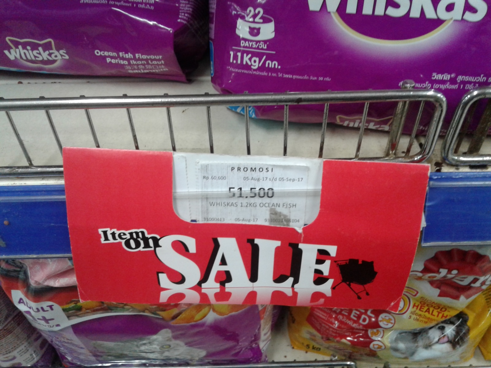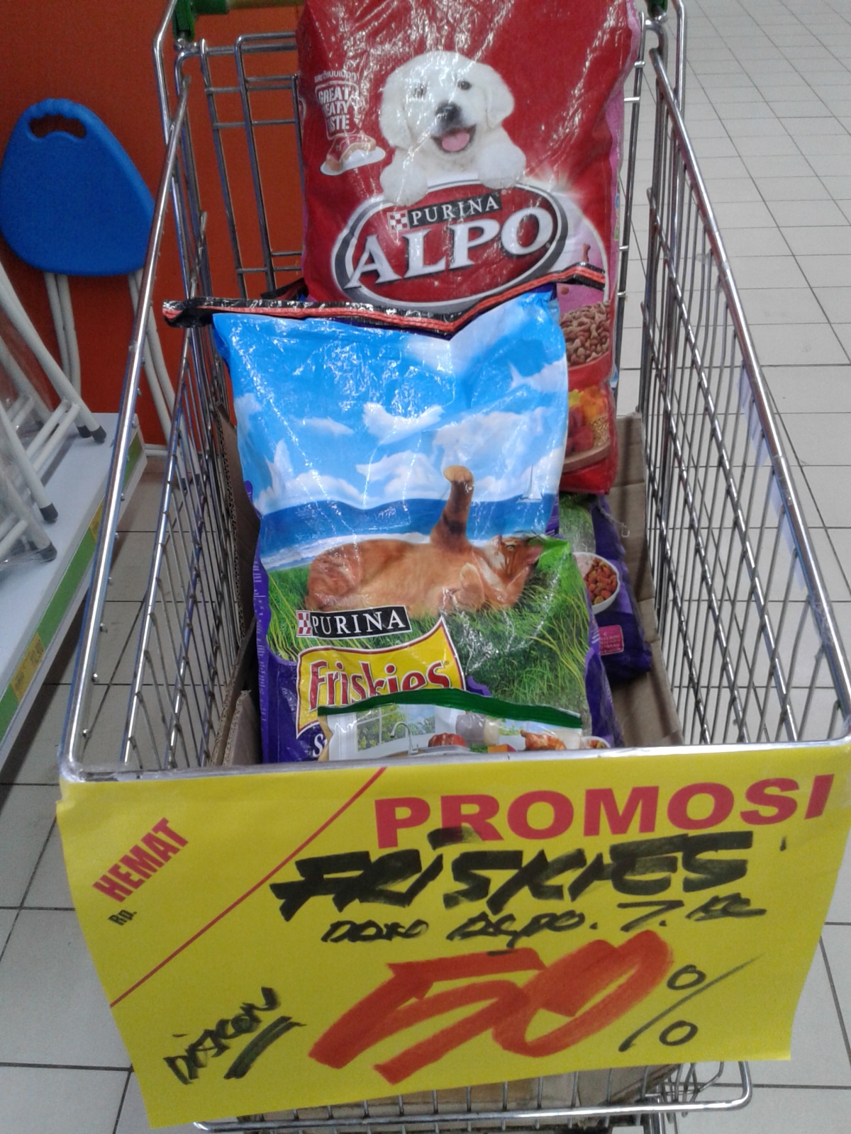Ada diskon 50% utk beberapa makanan kucing , di diskon krn akan expired 1 bulanan lagi,