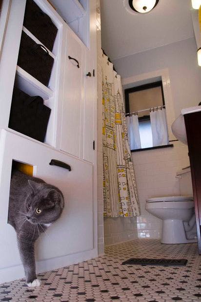 Litter box kucing akan terlihat lbh rapi dlm ruangan yg terbatas dan nyaman juga utk kucing ketika semua tertata dan diletakkan dgn lokasi yg tersembunyi.