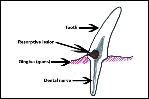 Resorpsi gigi jarang terjadi pada manusia; bisa terjadi juga pada anjing tapi masalahnya jauh lebih umum pada kucing.