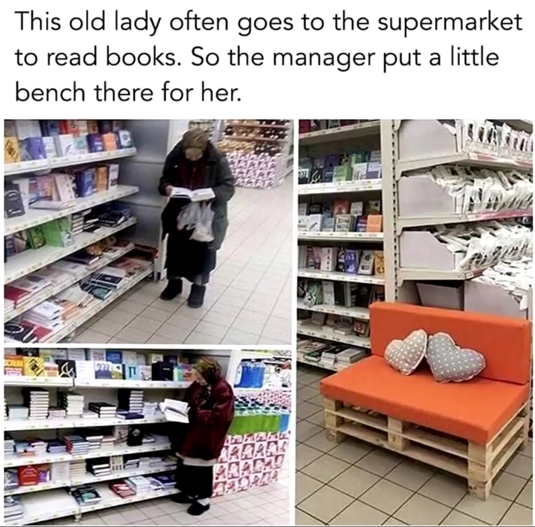 Saat Pelanggan nya yang biasa membaca nampak kesulitan, sang Manager menyiapkan bangku agar Si ibu bisa lebih nyaman,