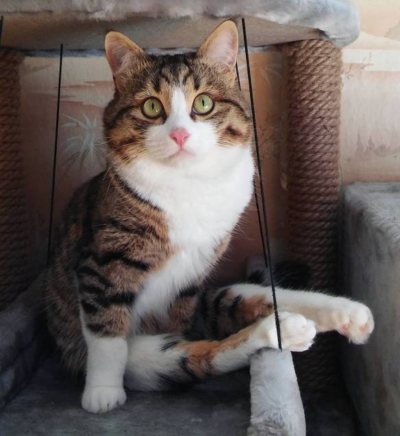 Kucing ini berusia satu thn ketika kehilangan dua kakinya saat tersengat listrik di kawat yg dialiri listrik,